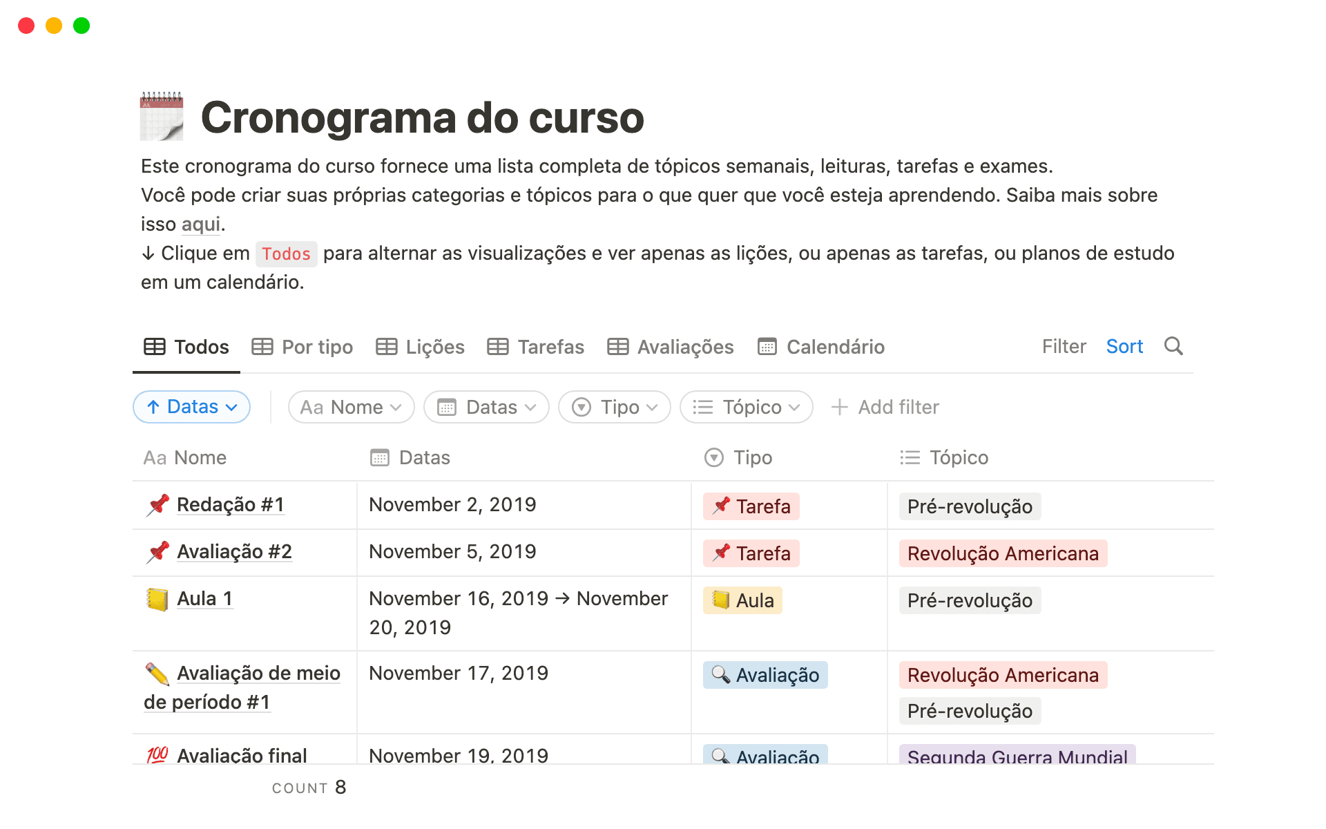 Classificações e avaliações